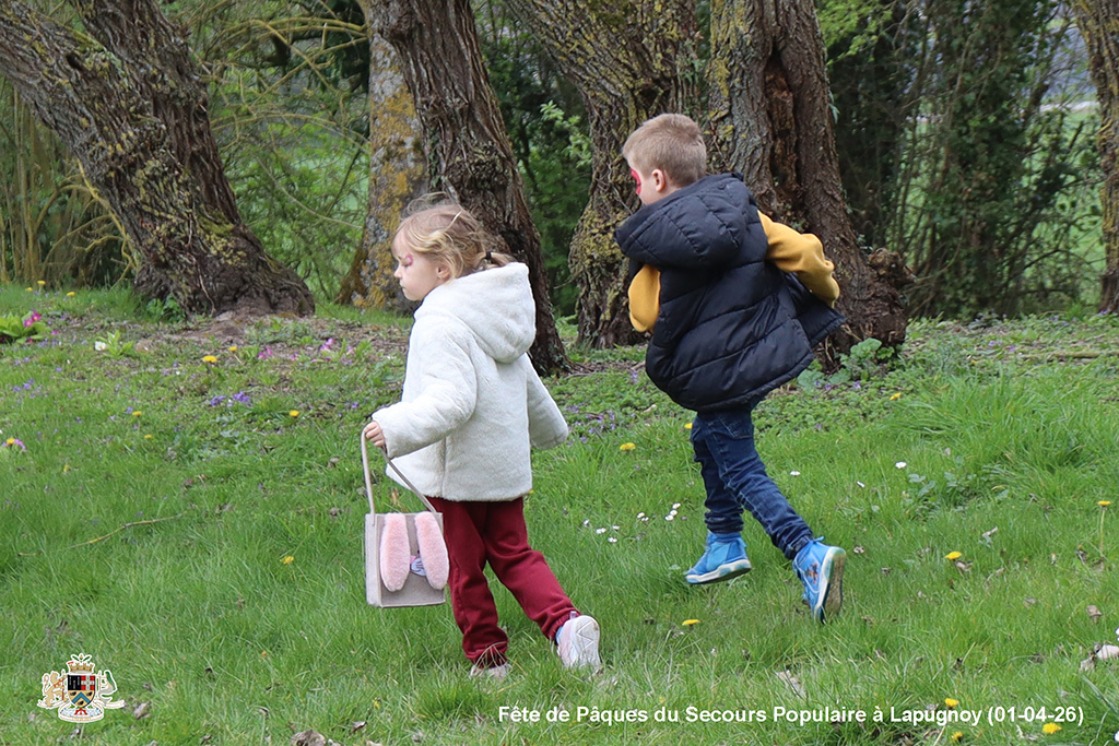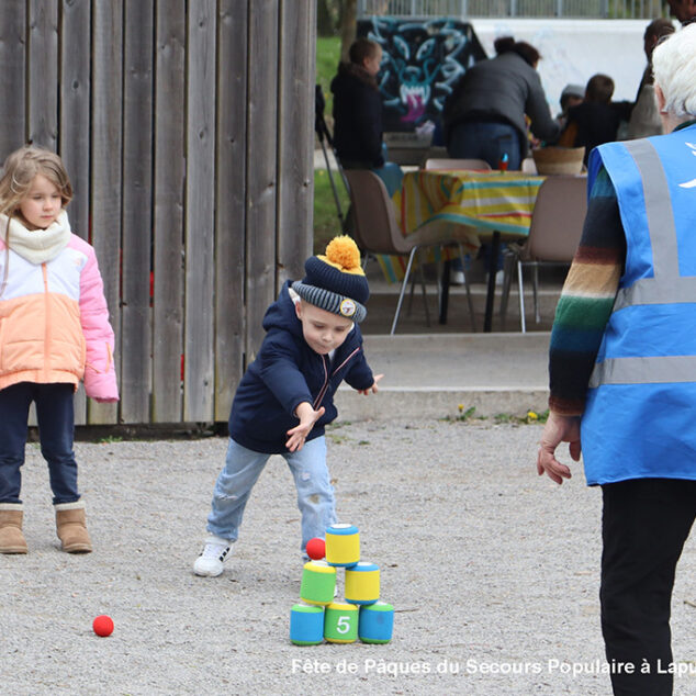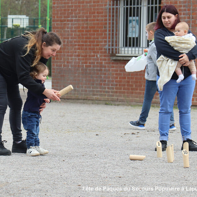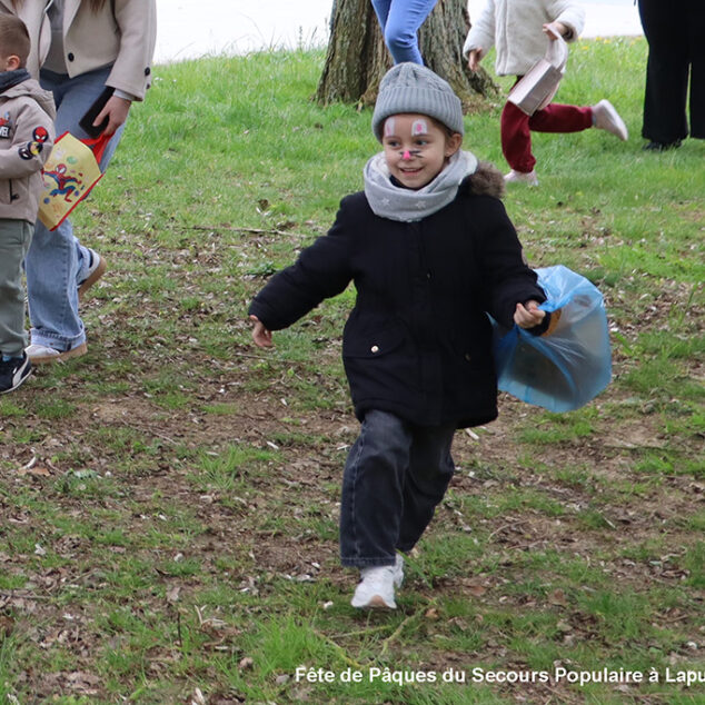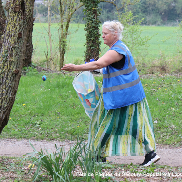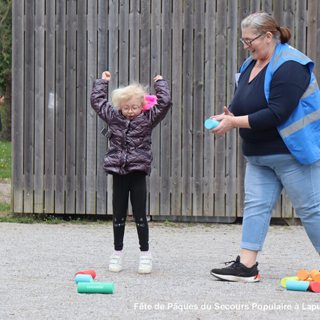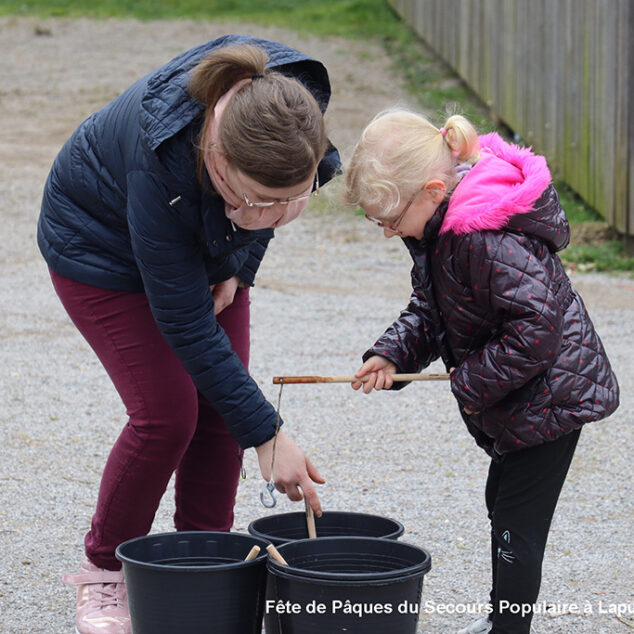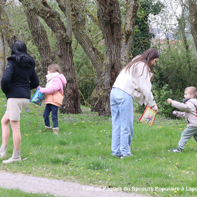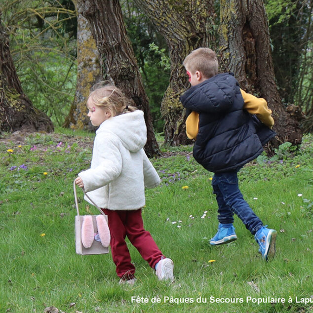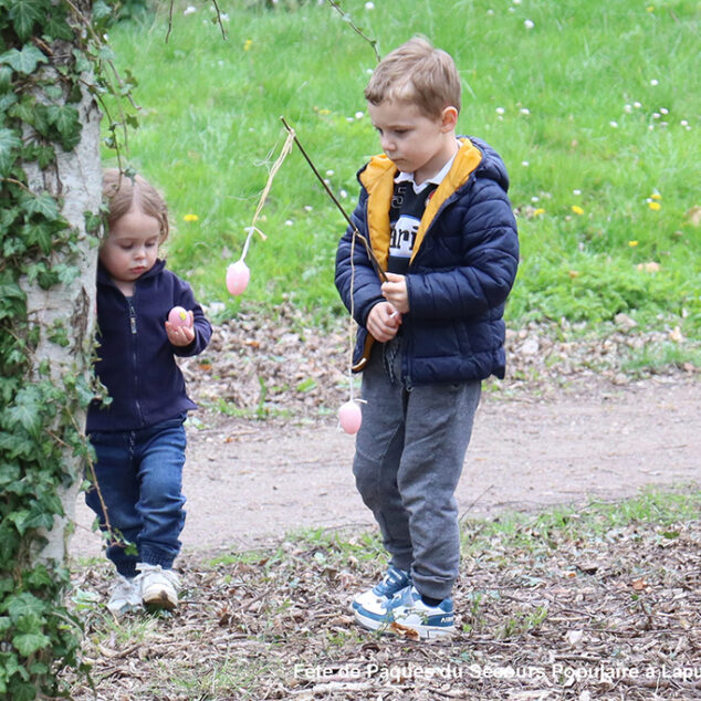 Une chasse aux œufs, c’est bien. Mais une chasse aux œufs encadrée par le Secours Populaire, c’est encore mieux, parce qu’il y a plein de petits jeux en supplément, et tout ce qu’il faut pour s’amuser.