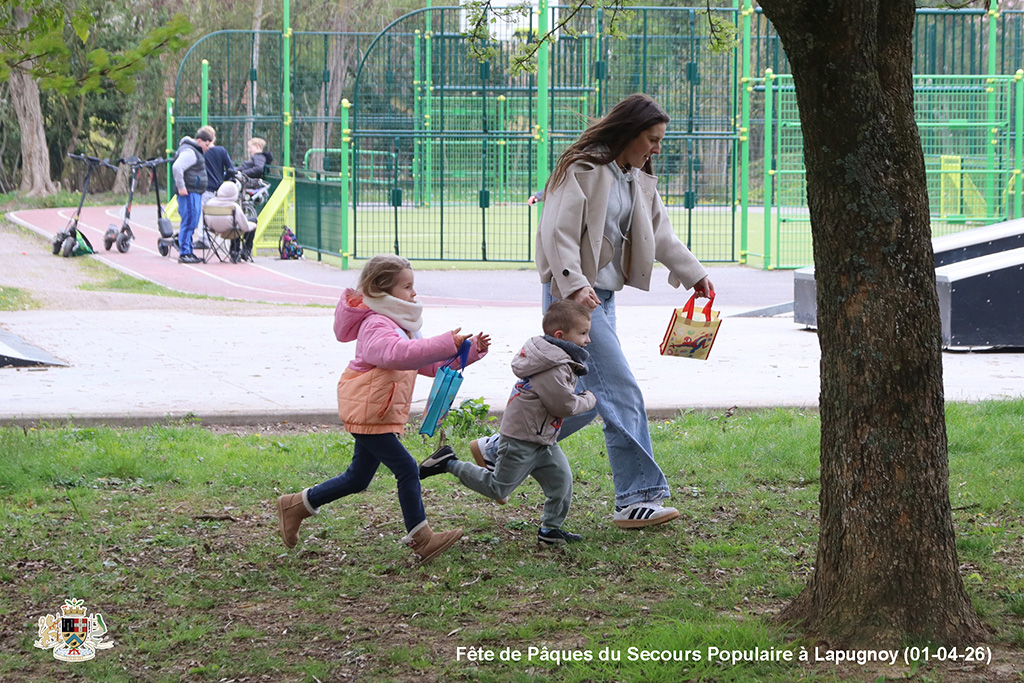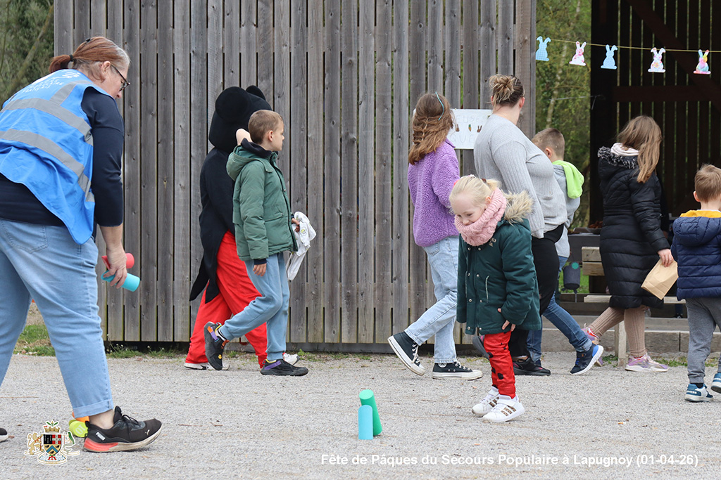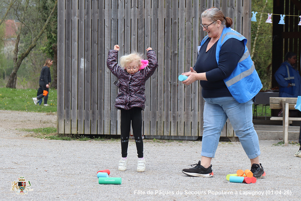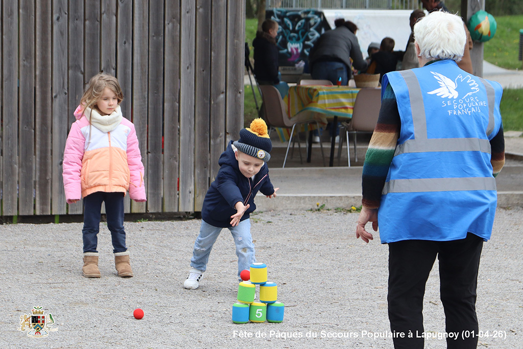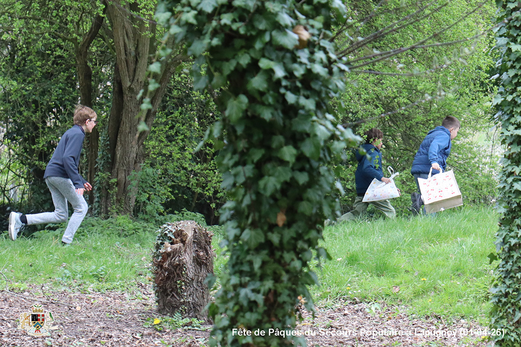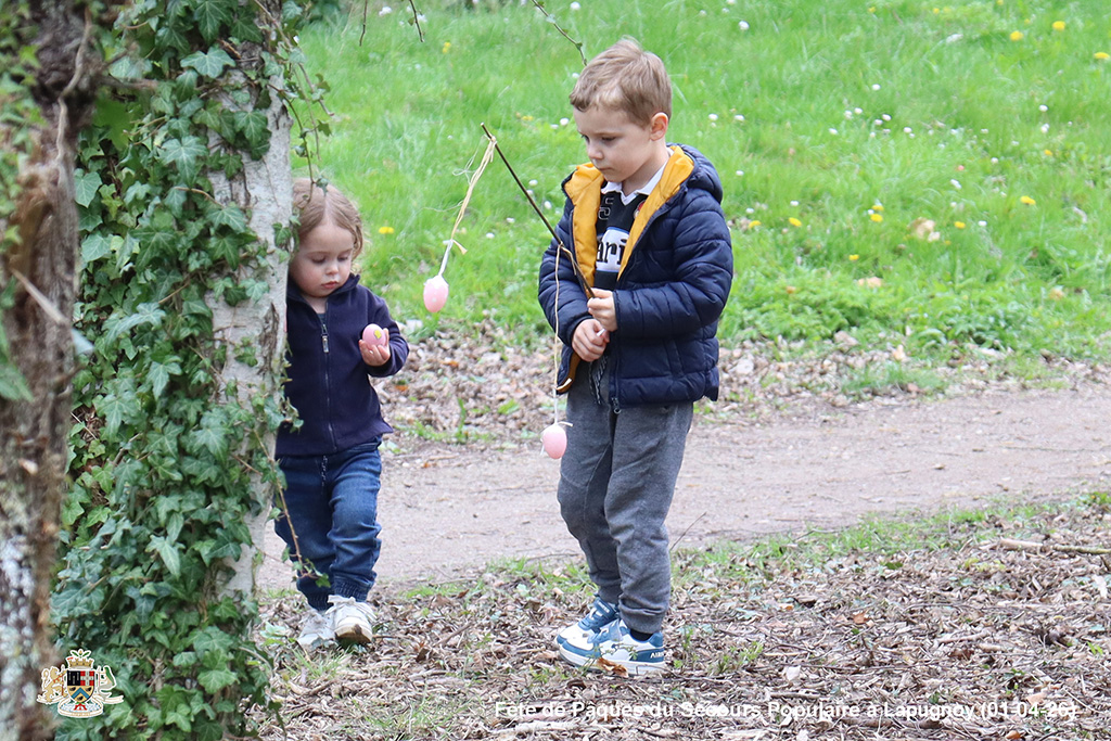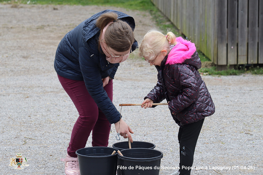 Une chasse aux œufs, c’est bien. Mais une chasse aux œufs encadrée par le Secours Populaire, c’est encore mieux, parce qu’il y a plein de petits jeux en supplément, et tout ce qu’il faut pour s’amuser.
