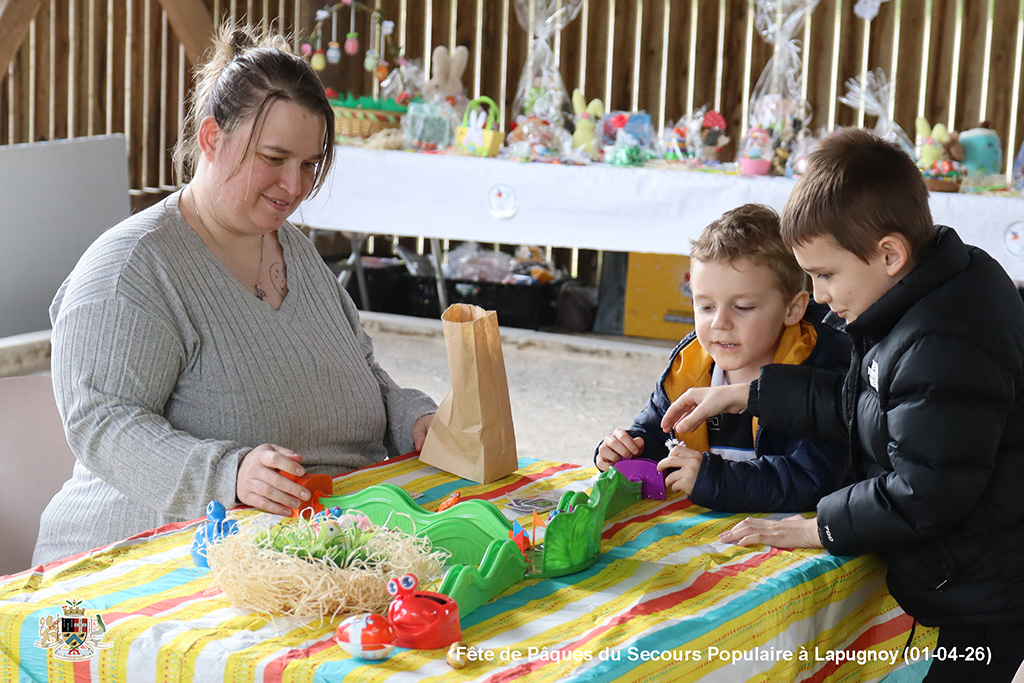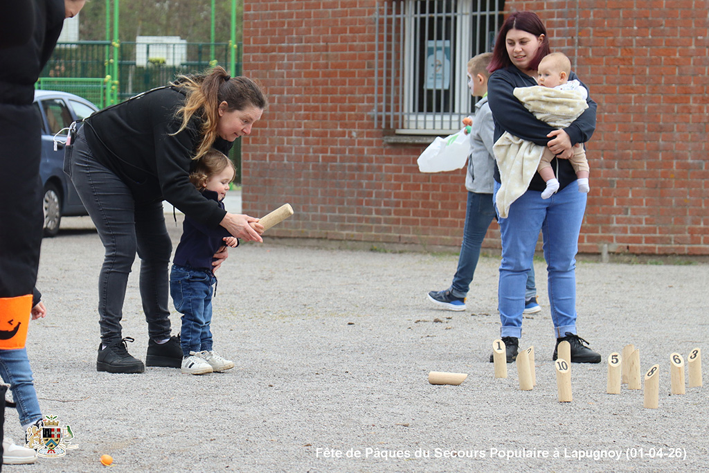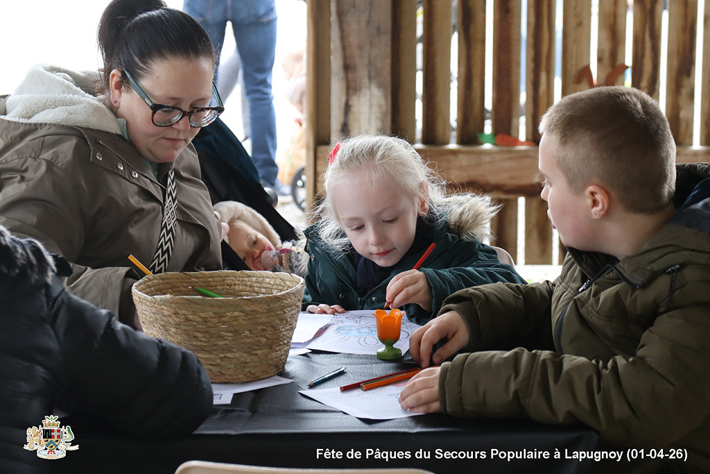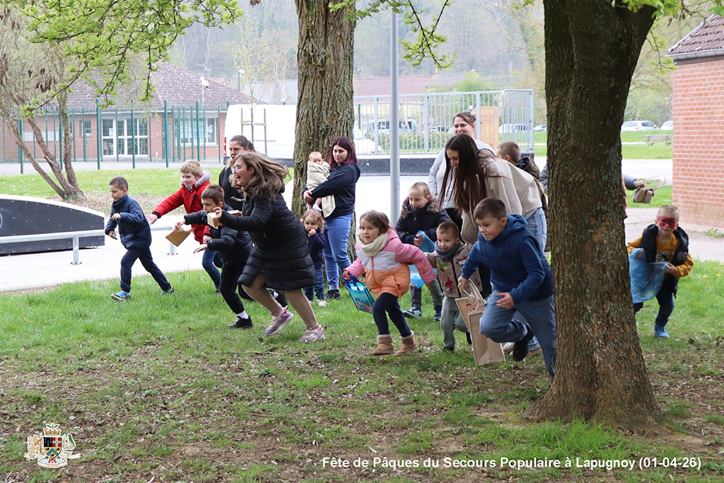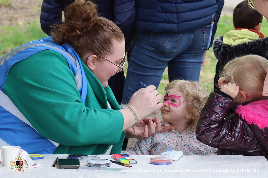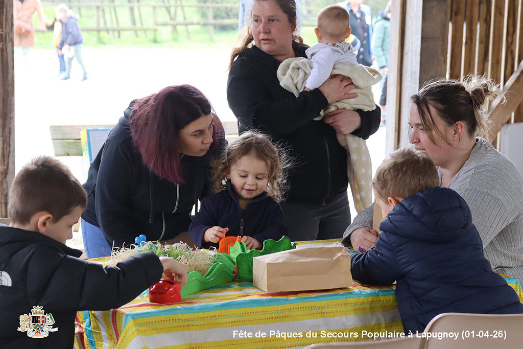 Une chasse aux œufs, c’est bien. Mais une chasse aux œufs encadrée par le Secours Populaire, c’est encore mieux, parce qu’il y a plein de petits jeux en supplément, et tout ce qu’il faut pour s’amuser.